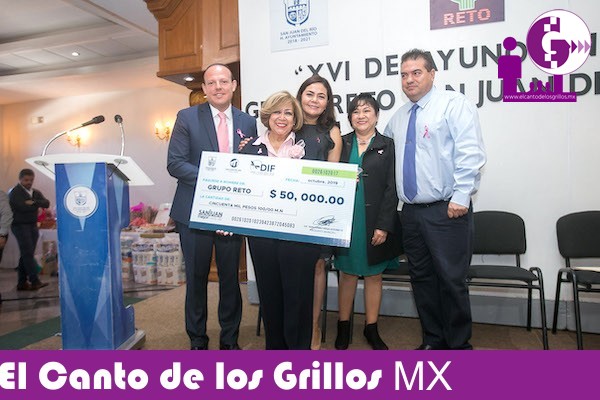 El gobierno municipal entregó un donativo a Grupo Reto, en el marco de su Desayuno Anual, con la finalidad de que este recurso les apoye en las diferentes actividades que realizan en beneficio de las mujeres diagnosticadas con cáncer de mama o cervicouterino.