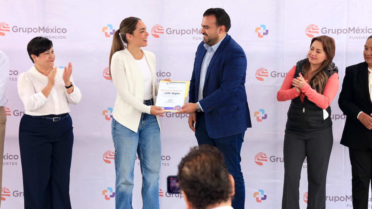 El presidente municipal reconoció públicamente el trabajo de su esposa, Elena Arreguín de la Torre, al frente del DIF Municipal, y agradeció a la Fundación Grupo México y al gobierno del estado por su respaldo y apoyo.