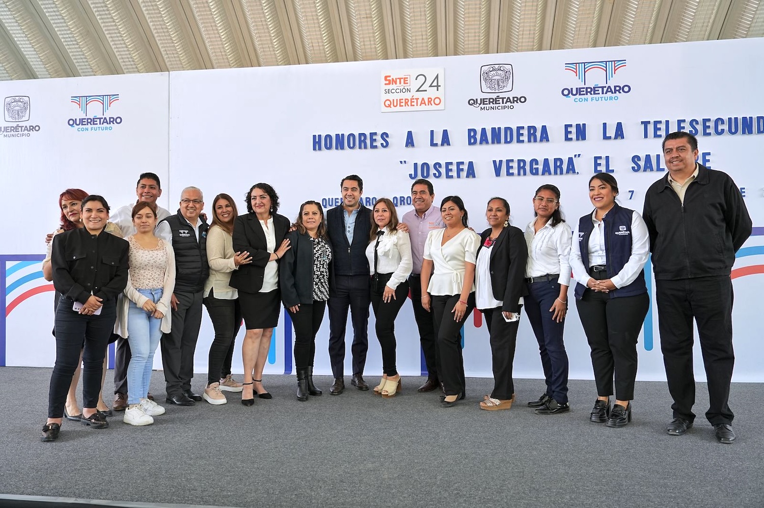 El presidente municipal de Querétaro, Felifer Macías, encabezó la ceremonia de honores a la Bandera en la Telesecundaria “Josefa Vergara”, ubicada en El Salitre, delegación Epigmenio González, donde destacó que la educación es clave para construir el mejor futuro para Querétaro.