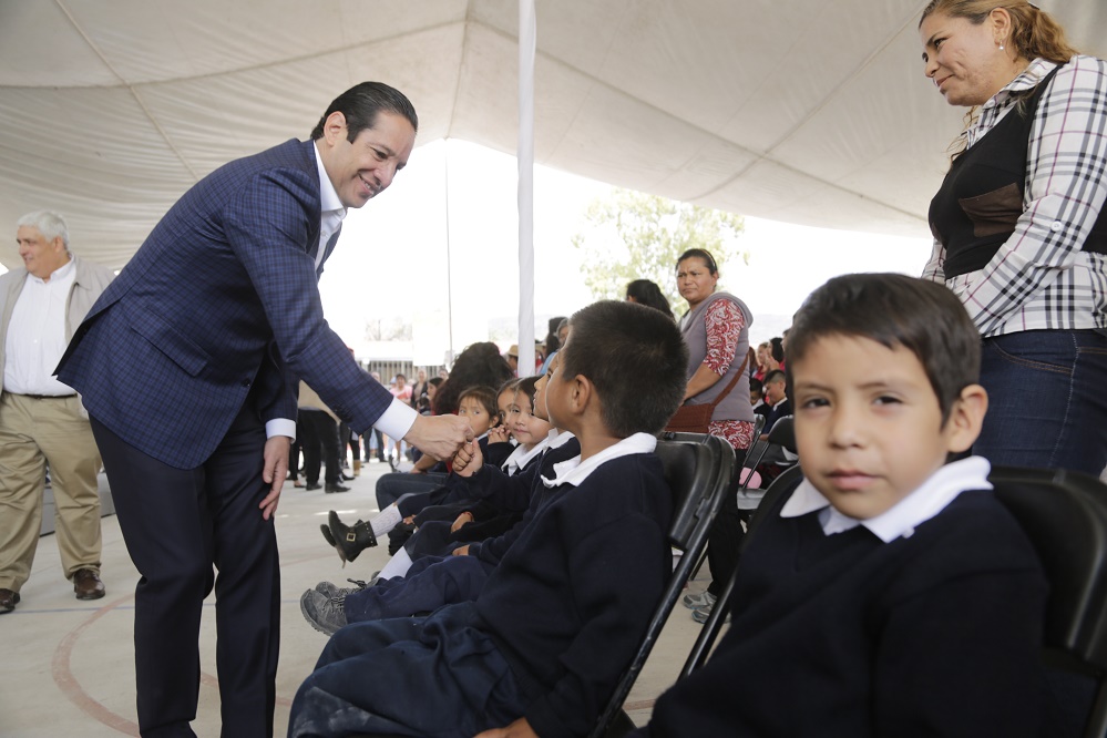 “No dejaremos de atender a ni una sola escuela en el estado que necesite acciones de Gobierno para que todas las escuelas tengan las mismas oportunidades”, subrayó el mandatario en presencia también de Marcos Aguilar Vega, presidente municipal de Querétaro; Eric Salas, diputado local; y la alumna destacada Melanie Carolina Pérez.
