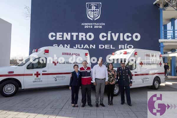 En el marco del Arranque de la Colecta Municipal 2018 “Necesitamos de tus manos para poder seguir ayudando” de la Cruz Roja Mexicana Delegación San Juan del Río, el alcalde Memo Vega, acompañado de su esposa, Male Ruiz, realizó la entrega de dos nuevas ambulancias y el donativo de 25 mil pesos, para apoyar a esta benemérita institución que brinda auxilio a la ciudadanía sanjuanense.