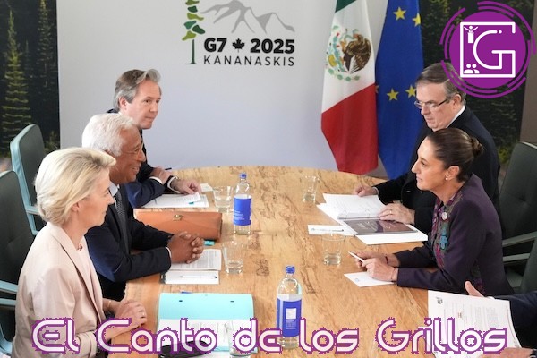 En el marco de la 51ª Cumbre de Líderes del G7, en Kananaskis, Alberta, Canadá, la presidenta Claudia Sheinbaum Pardo sostuvo una reunión con el presidente del Consejo Europeo, António Costa, y con la presidenta de la Comisión Europea, Ursula von der Leyen, para dialogar sobre la actualización del tratado comercial entre México y la Unión Europea.