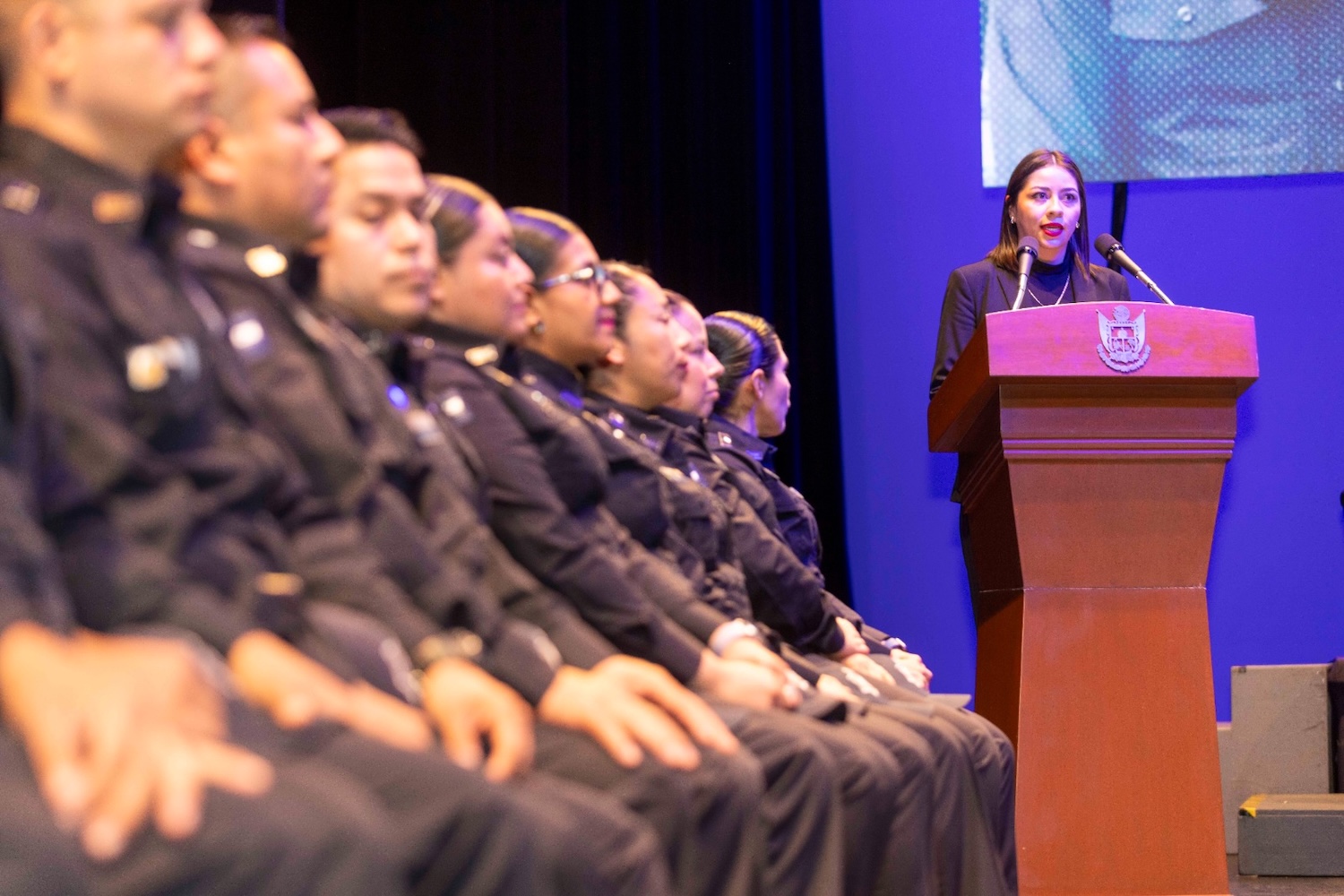 Se dijo gustoso de dar la bienvenida a los jóvenes que se integran a la corporación, que en este 2024 se convirtió en una de las instituciones locales que sumó mayor cantidad de méritos; de igual manera distinguió a los 42 elementos que obtuvieron grados de Policía Tercero, y 27 de Policía Segundo, a quienes instó a no bajar la guardia y ser siempre policías ejemplares que pongan en alto el orgullo de ser 100 por ciento Poes.