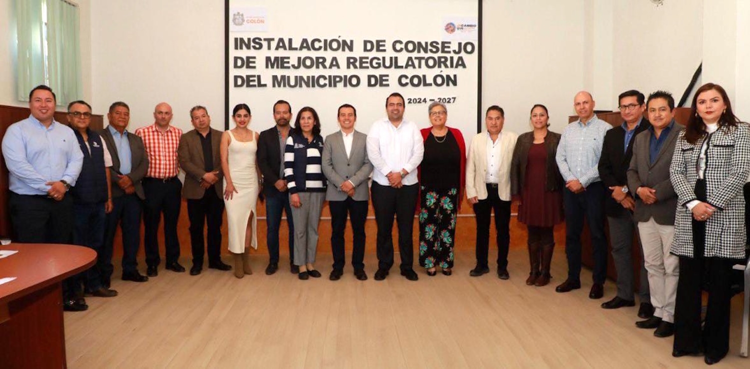 El presidente municipal de Colón, Gaspar Trueba Moncada, encabezó la instalación del Consejo Municipal de Mejora Regulatoria, destacando la importancia de simplificar trámites y servicios para los ciudadanos y mejorar la competitividad del municipio.