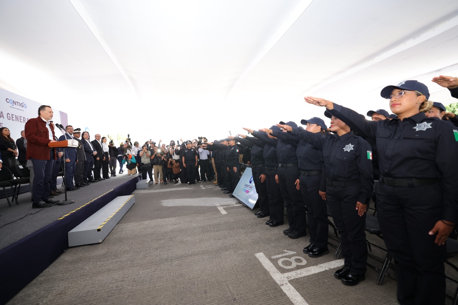 El secretario de Seguridad Ciudadana manifestó que con esta ceremonia se demuestra que se cumple con la meta trazada por el gobernador de entregar a la ciudadanía al menos 100 nuevos policías por año. Actualmente, compartió, se forma la segunda generación integrada por otras 57 personas y en el segundo semestre se sumará un tercer grupo que se graduará antes de que concluya este año.