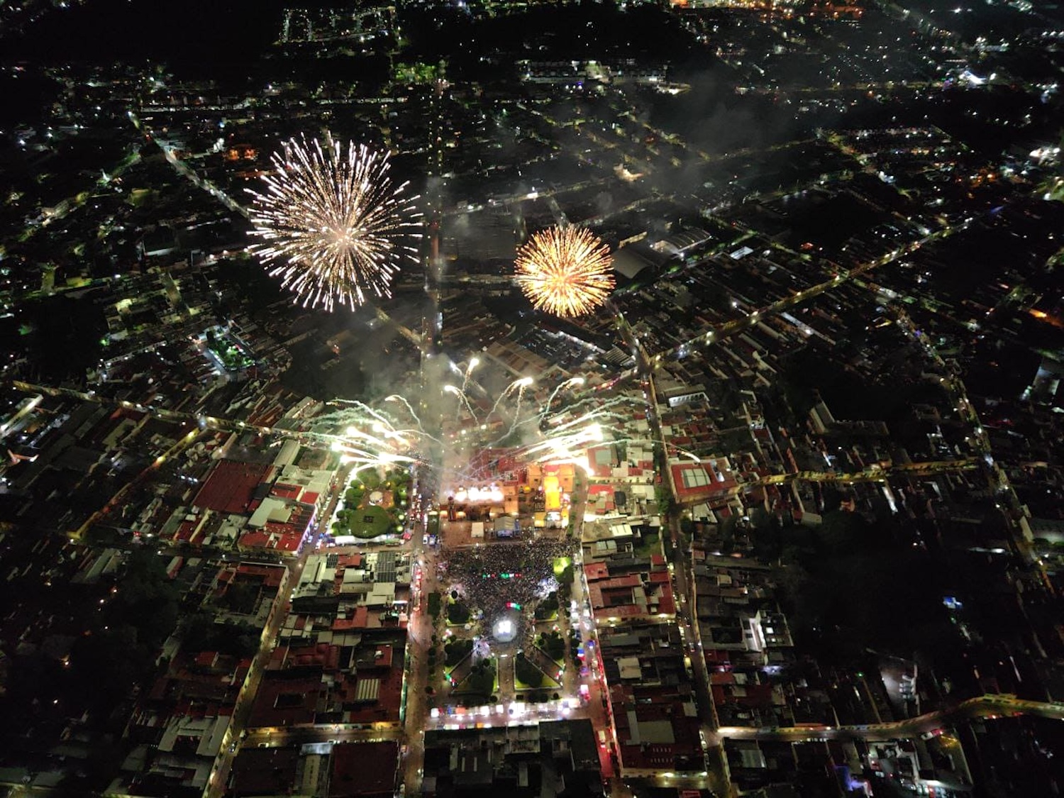 Tras el Grito de Independencia, la zona centro del municipio se iluminó con un espectáculo pirotécnico que fue amenizado con música. A este le siguió la presentación de “Los Chimikuiles” en la Plaza Independencia, quienes fueron bien recibidos por los sanjuanenses que bailaron y entonaron las canciones de la mencionada agrupación.