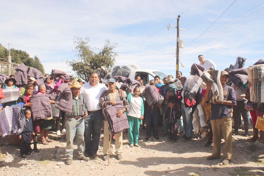 Heriberto Cruz Zárate, presidente del Sistema Municipal DIF (SMDIF), en recorrido por las comunidades más frías y lejanas de la cabecera, hizo entrega de cobijas.