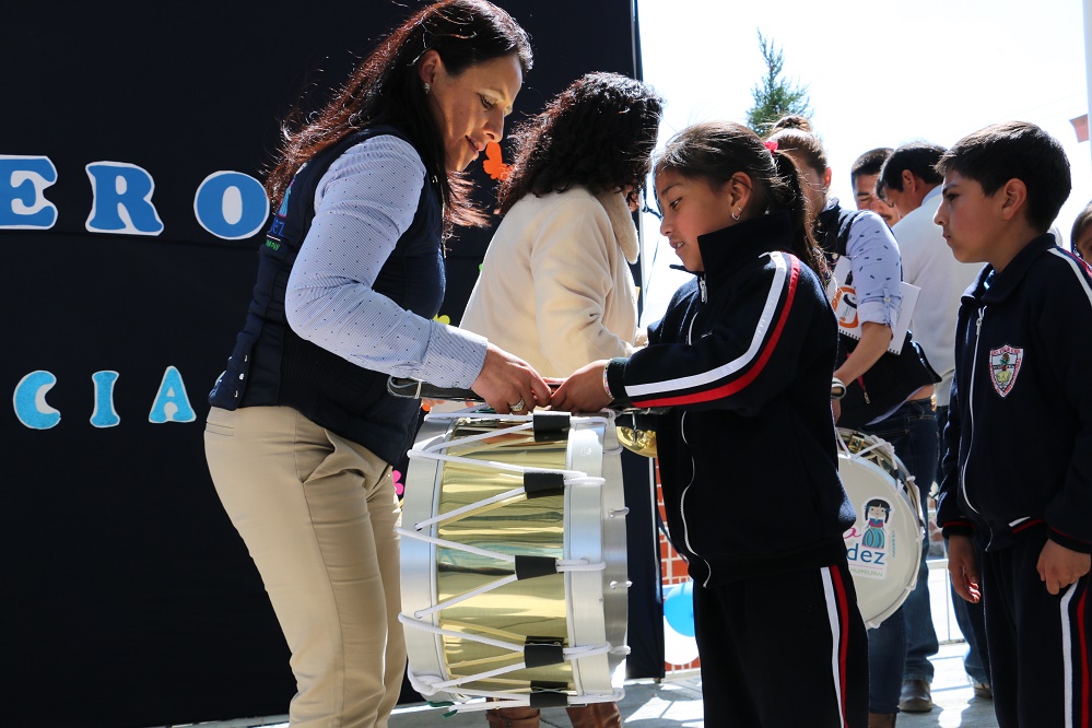 Con el propósito de fortalecer la cultura cívica, la diputada local por el Octavo Distrito, Verónica Hernández Flores realizó la entrega de instrumentos de banda de guerra a estudiantes de la escuela primaria Artículo 3º Constitucional, de la cabecera municipal de Amealco de Bonfil.