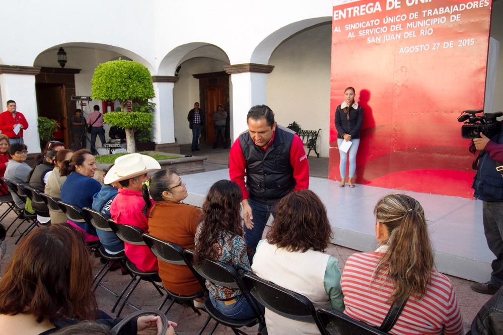 Con el objetivo de brindar las herramientas necesarias para el correcto desempeño de sus labores, el presidente municipal de San Juan del Río, Fabián Pineda Morales, entregó uniformes al personal agremiado al Sindicato Único de Trabajadores al Servicio del Municipio de San Juan del Río (SUTSMSJR).