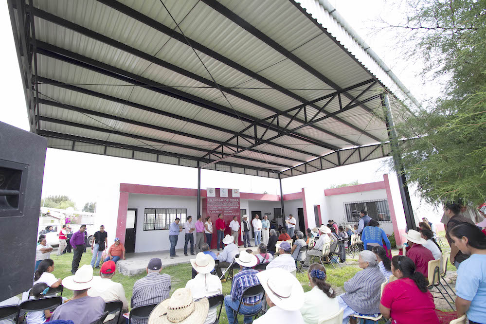 En la comunidad Ojo de Agua entregó la construcción del techado en el patio de un edificio del DIF y la reubicación de la línea eléctrica de media tensión. En estas acciones se inyectaron un millón 540 mil 984 pesos.