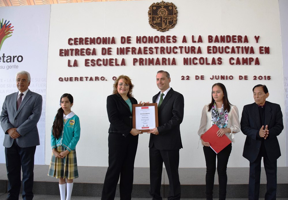 Al destacar que la niñez es la base de nuestra sociedad, el Presidente Municipal de Querétaro, Luis Cevallos Pérez, entregó infraestructura educativa en la Escuela Primaria “Nicolás Campa”, ubicada en la colonia San Francisquito, Delegación Centro Histórico.