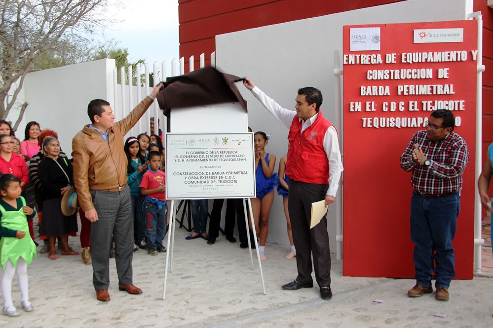 El Presidente Municipal de Tequisquiapan, Luis Antonio Macías Trejo, entregó mobiliario de equipamiento y obras de bardeado perimetral en el Centro de Desarrollo Comunitario de la comunidad de El Tejocote, en beneficio de los 3 mil 51 habitantes de la localidad.
