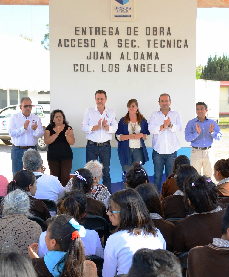 Ejecutada con una inversión de un millón 959 mil 743 pesos, Mauricio Kuri González, presidente municipal de Corregidora, entregó en la colonia Los Ángeles la obra “Acceso a la secundaria técnica Juan Aldama”.