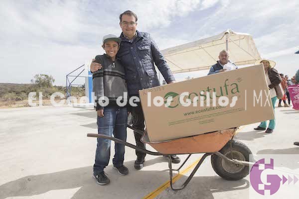 En gira de trabajo por las comunidades Estancia de Bordos, Santa Lucía, Estancia de Santa Lucía, Cerro Gordo y El Sitio, el Presidente Municipal, Memo Vega, acompañado de su esposa, Sra. Male Ruiz, hizo entrega de estufas ecológicas para beneficio de 220 familias de estas localidades, como parte del programa municipal “Bienestar”.