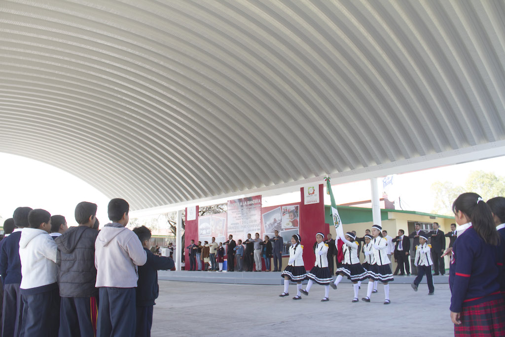 “Ésta obra es la número 44, 44 techumbres de 61 que vamos a construir en un periodo de tres años (…); en esta obra invertimos más de un millón de pesos. Estos trabajos son importantes porque aquí ustedes hacen honores a la bandera, juegan, realizan actividades artísticas y la techumbre va a ayudar para que se puedan proteger del sol”, refirió.