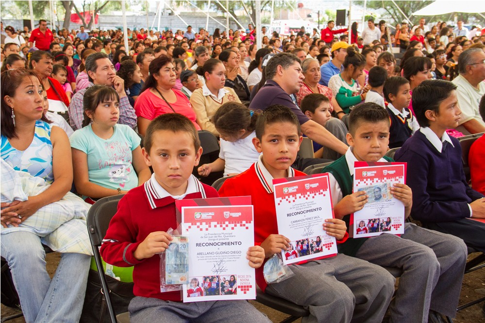 Para reconocer y apoyar a dos mil 200 estudiantes sanjuanenses, el alcalde Fabián Pineda Morales entregó estímulos económicos con inversión superior a los 700 mil pesos. Los beneficiarios fueron mil 403 alumnos de educación primaria, 497 de secundaria, 124 de medio superior, 66 universitarios y 110 de educación especial.