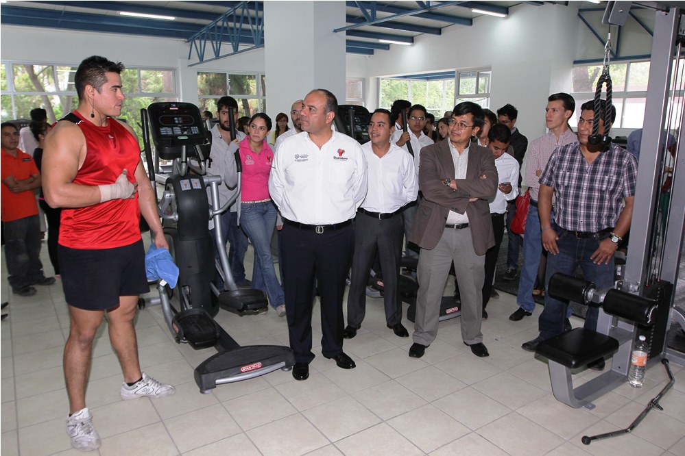 Acompañado por el Rector de la UAQ, Gilberto Herrera Ruiz, realizó un recorrido por el gimnasio de la Facultad de Ingeniería para hacer la entrega oficial de estos aparatos, con lo que se da respuesta a la petición de los estudiantes.