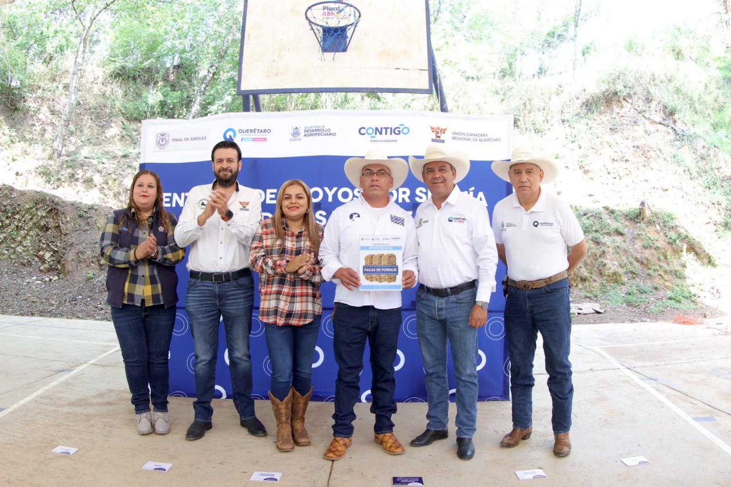 El secretario de Desarrollo Agropecuario, Rosendo Anaya, encabezó la entrega de forraje y alimento concentrado, como parte del programa de apoyo por sequía a ganaderos de pequeña y mediana escala en la Sierra. El recurso permitirá entregar dos mil 325 pacas de forraje, en Pinal de Amoles y cuatro mil 620 bultos de alimento concentrado a ganaderos de Landa de Matamoros, beneficiando a 93 y 330 productores, respectivamente.