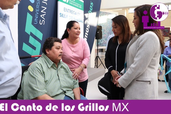Como resultado de la campaña institucional “Actitud Lobo/Toneladas de Amor” la rectora de la Universidad Tecnológica de San Juan del Río (UTSJR) Bibiana Rodríguez Montes, a nombre de la comunidad universitaria, entregó una silla de ruedas a Gustavo Durán Olalde, vecino de la colonia Vista Hermosa y quien sufre de una discapacidad de movilidad.