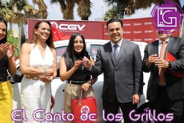 El presidente municipal de Querétaro, Luis Nava, en compañía de la directora de Administración y Finanzas de la Caja Gonzalo Vega, Arlette Orozco Tavares, entregó a María José Gudiño Verde las llaves del vehículo Nissan March Sense TM 2024, que se ganó en el sorteo entre los 5 mil corredores que participaron en la Carrera Nocturna CGV 2024 del pasado 31 de agosto en el Centro Histórico.