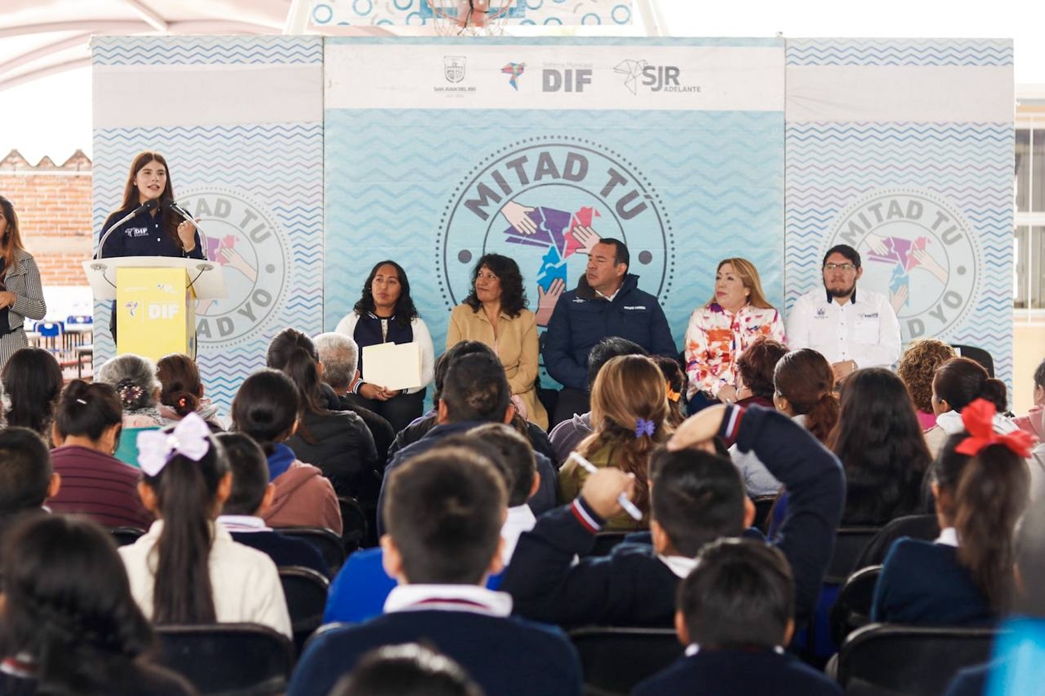 La beneficiaria del Programa Mitad Tú, Mitad Yo, Alma Delia Chávez, mencionó que, actualmente, la primaria es un espacio digno para la educación de los alumnos, lo cual se ha logrado, acotó, gracias al gobernador, Mauricio Kuri; al presidente municipal, Roberto Cabrera; a la presidenta del DIF sanjuanense, Georgina Sánchez, y a la directora del plantel, Lorena Reséndiz, quien recibió un reconocimiento por su labor al frente de la primaria Adolfo López Mateos.