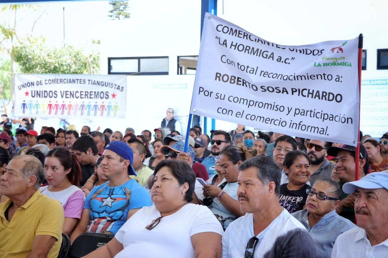 En su participación, José Luis Ceceña Martorell, presidente de la Asociación “Pirámide de Tianquiz”, agradeció al presidente municipal, Roberto Sosa Pichardo, por su apoyo para que los tianguis operen con orden y armonía.
