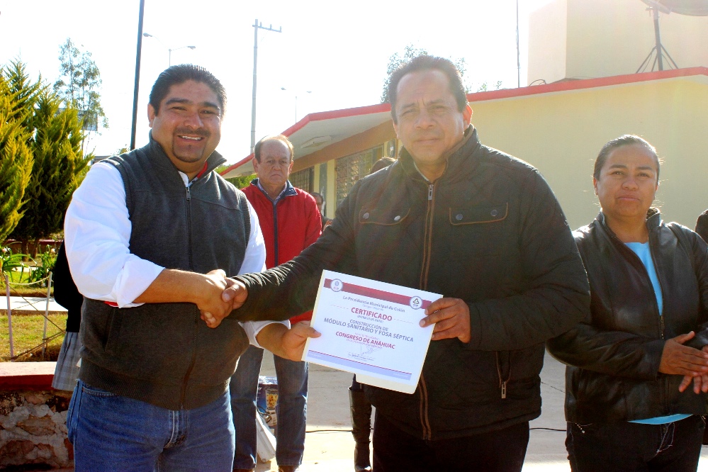 En la escuela telesecundaria “Congreso de Anáhuac”, ubicada en la comunidad La Esperanza, el presidente municipal de Colón, Alejandro Arteaga Cabrera, entregó el certificado de la construcción del módulo sanitario y fosa séptica.