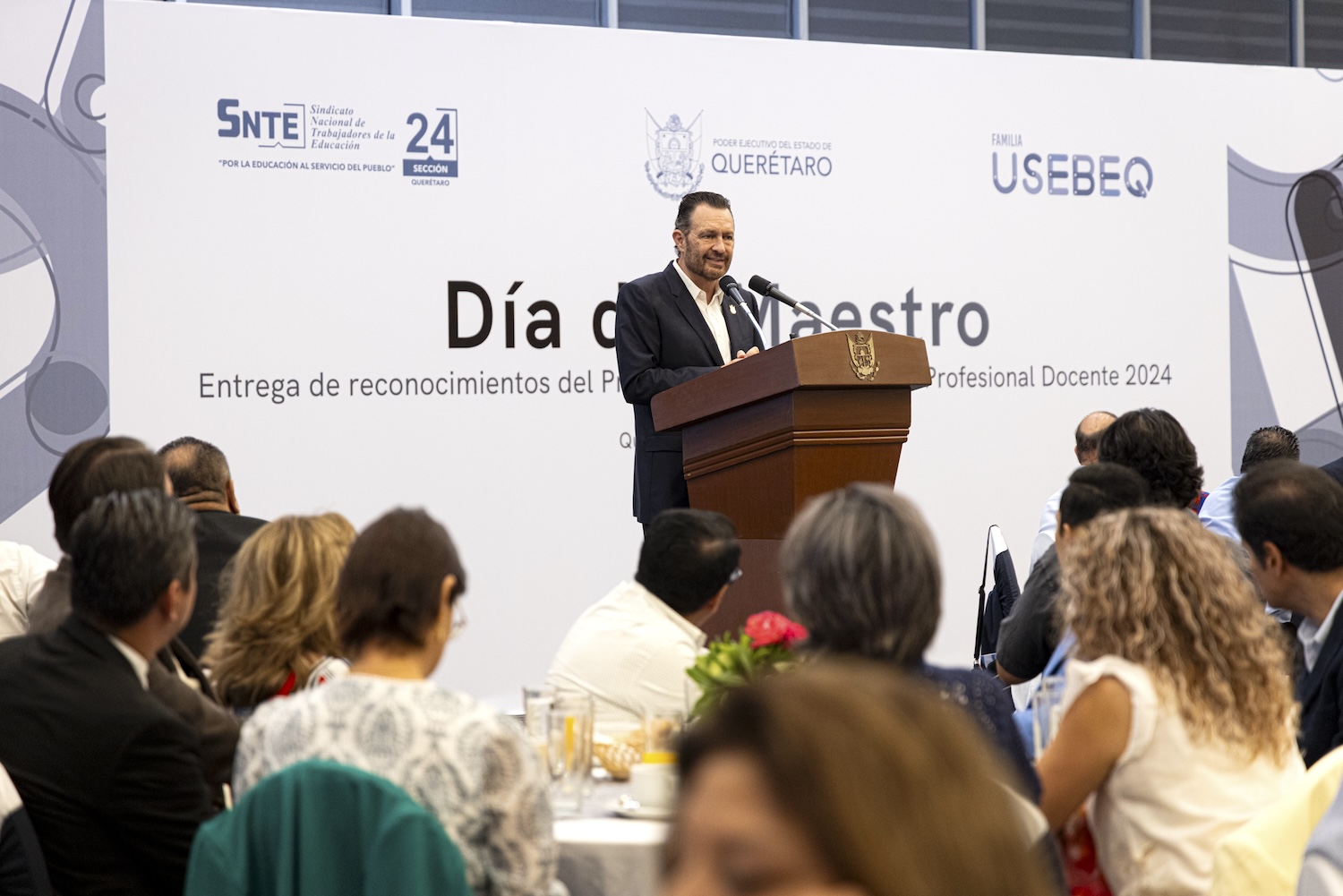 Al tomar la palabra, el gobernador de Querétaro se dijo honrado de estar rodeado de quienes todos los días encienden los motores del conocimiento en el estado, y en su día conmemorativo reconoció la excelencia en el desempeño profesional docente de la entidad.