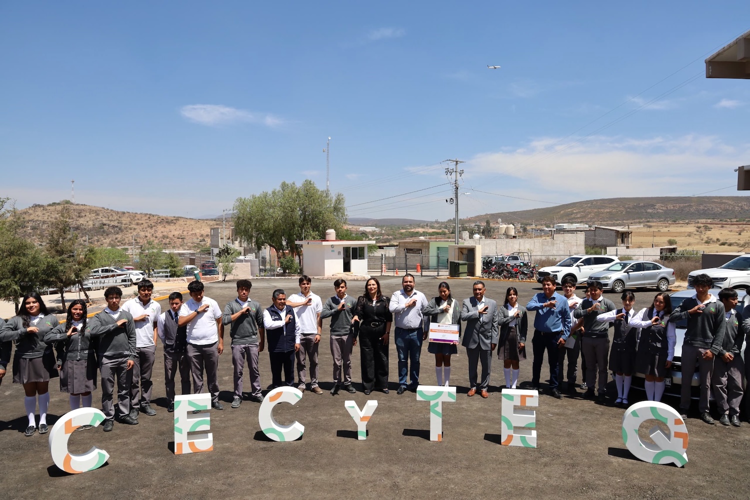 Este lunes, el presidente municipal de Colón, Gaspar Trueba, entregó la rehabilitación de la explanada del Colegio de Estudios Científicos y Tecnológicos (Cecyteq) Plantel 10, La Esperanza, Colón, además de la entrega de equipos de cómputo y proyectores producto del programa de Intervención Educativa 2024, esto en conjunto con la secretaria de Educación del Estado, Martha Elena Soto.