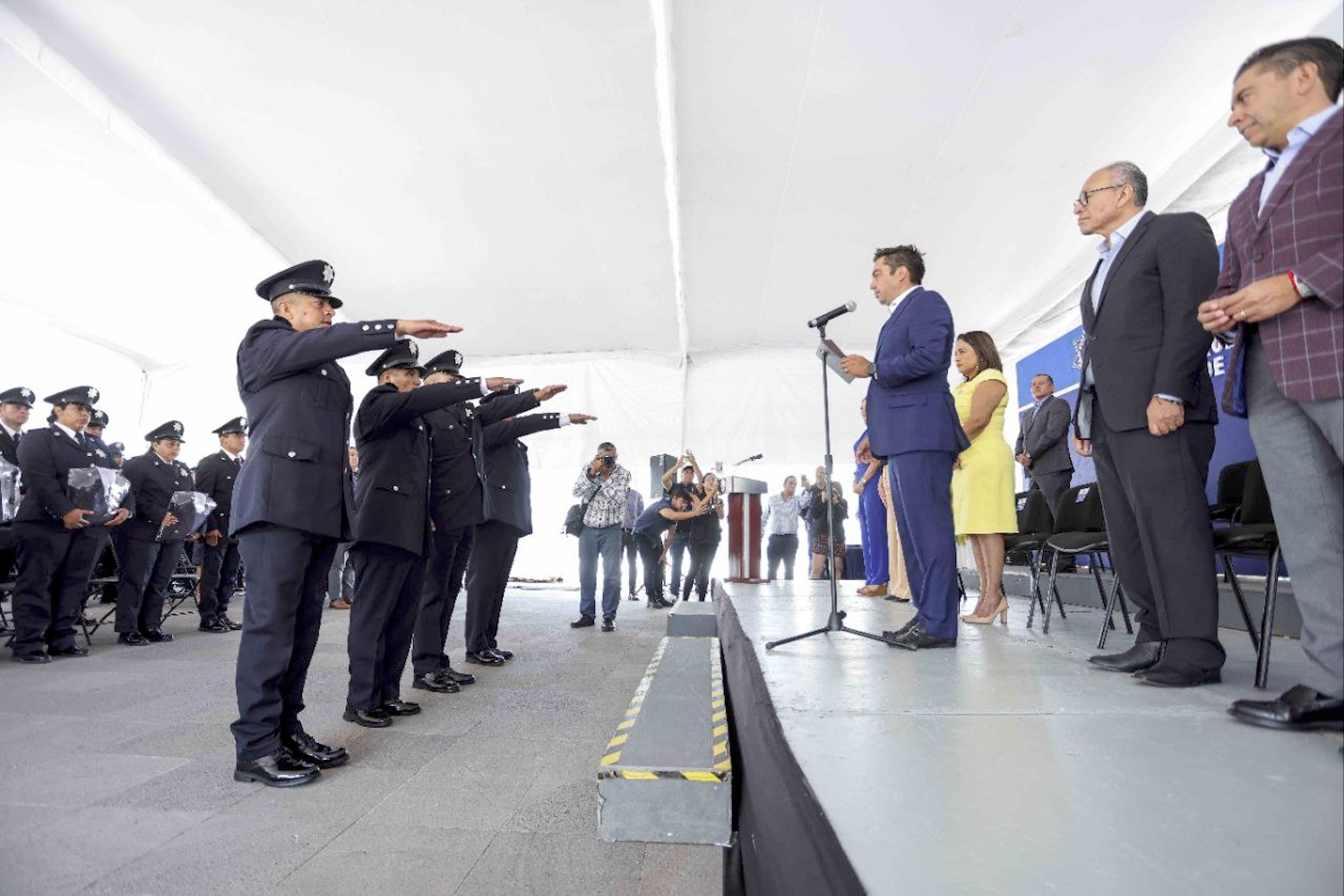 De igual manera, el presidente municipal hizo entrega de grados a cuatro elementos de la Secretaría de Seguridad Pública Municipal: uno como policía primero, dos como suboficiales y uno más como oficial; tras cumplir con requisitos como la antigüedad, capacitación y pruebas físicas, psicológicas, médicas y de control de confianza.