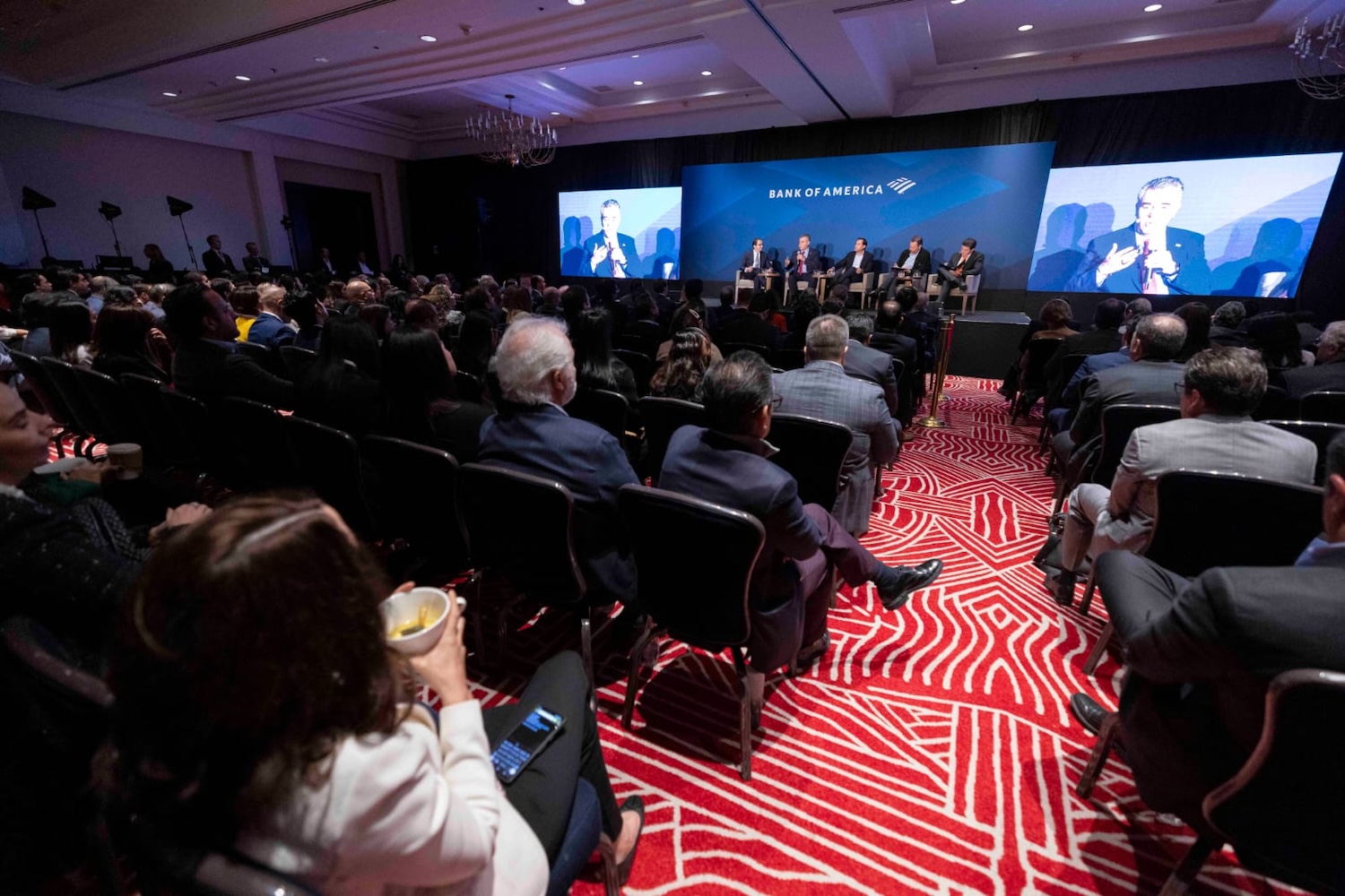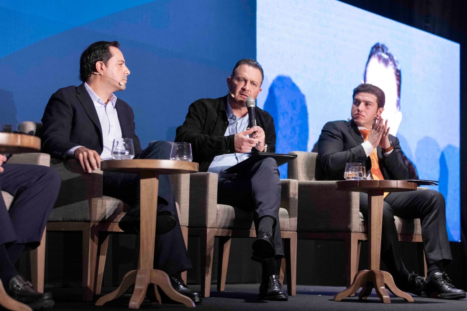 El conversatorio que se enfocó en las acciones que los gobiernos estatales han comenzado a realizar para impulsar la llegada de nuevas empresas en sus territorios, estuvo moderado por el economista en jefe para México y Canadá de Bank of America, Carlos Capistrán, quien también dio paso a la participación de los gobernadores de Yucatán, Mauricio Vila Dosal; y de Nuevo León, Samuel García Sepúlveda; así como del presidente del Consejo Coordinador Empresarial, Francisco Cervantes Díaz.