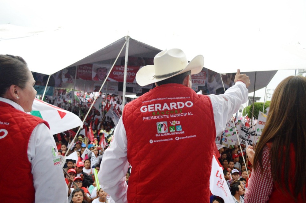 Al dirigirse a los presentes, Gerardo Sánchez solicitó al candidato a gobernador, Roberto Loyola, que la primera obra de su gobierno la realice en San Juan del Río, a lo que éste se comprometió a ejecutar, no sólo una, sino una de manera simultánea en cada una de las diez delegaciones de este municipio.