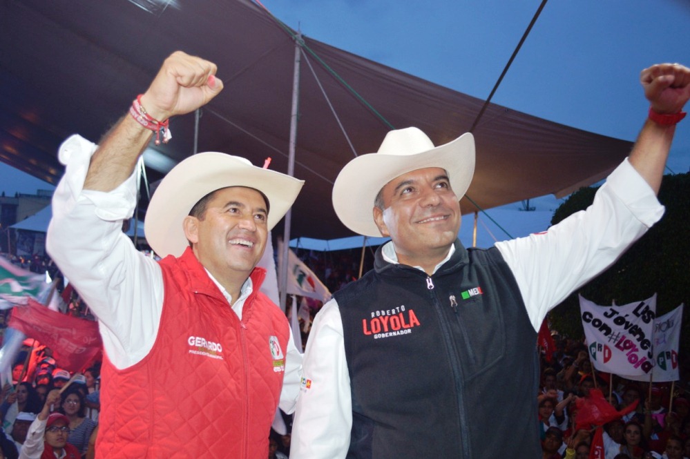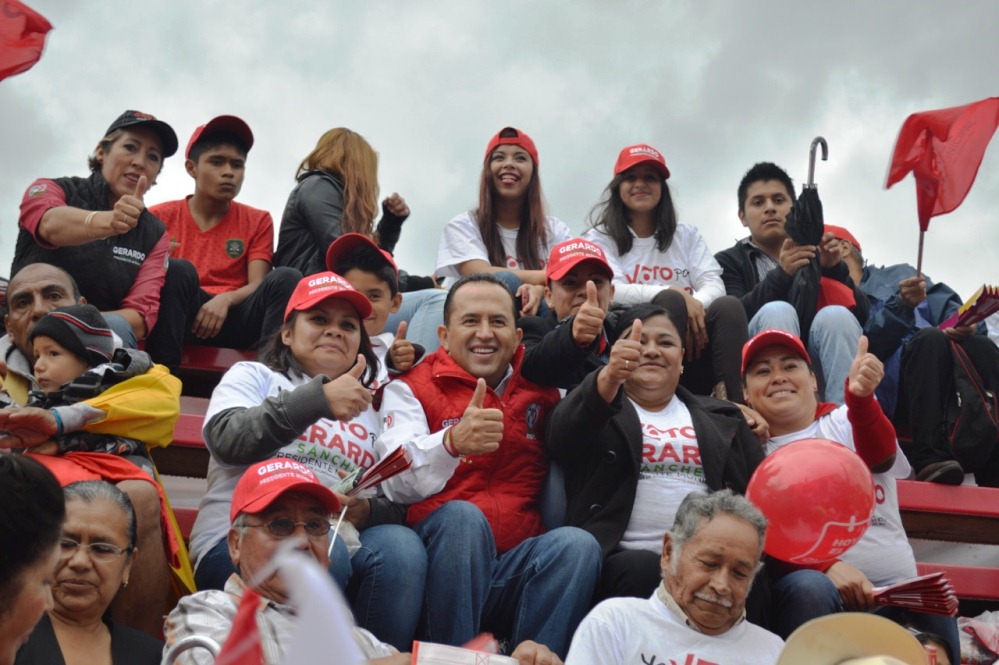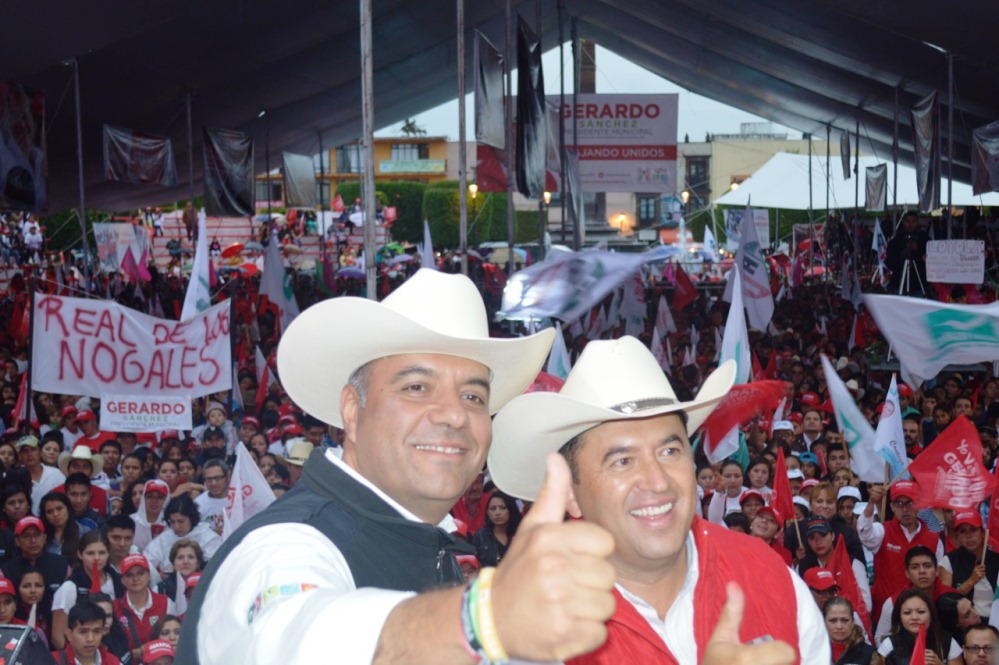Ante un pletórico Jardín Independencia, Gerardo Sánchez, candidato de PRI-Verde-NA a la presidencia municipal, cerró espectacularmente su campaña electoral, en compañía de los aspirantes a gobernador, Roberto Loyola; y a diputados por el IX Distrito, Vania Camacho, y por el X, Jaime Ruiz.