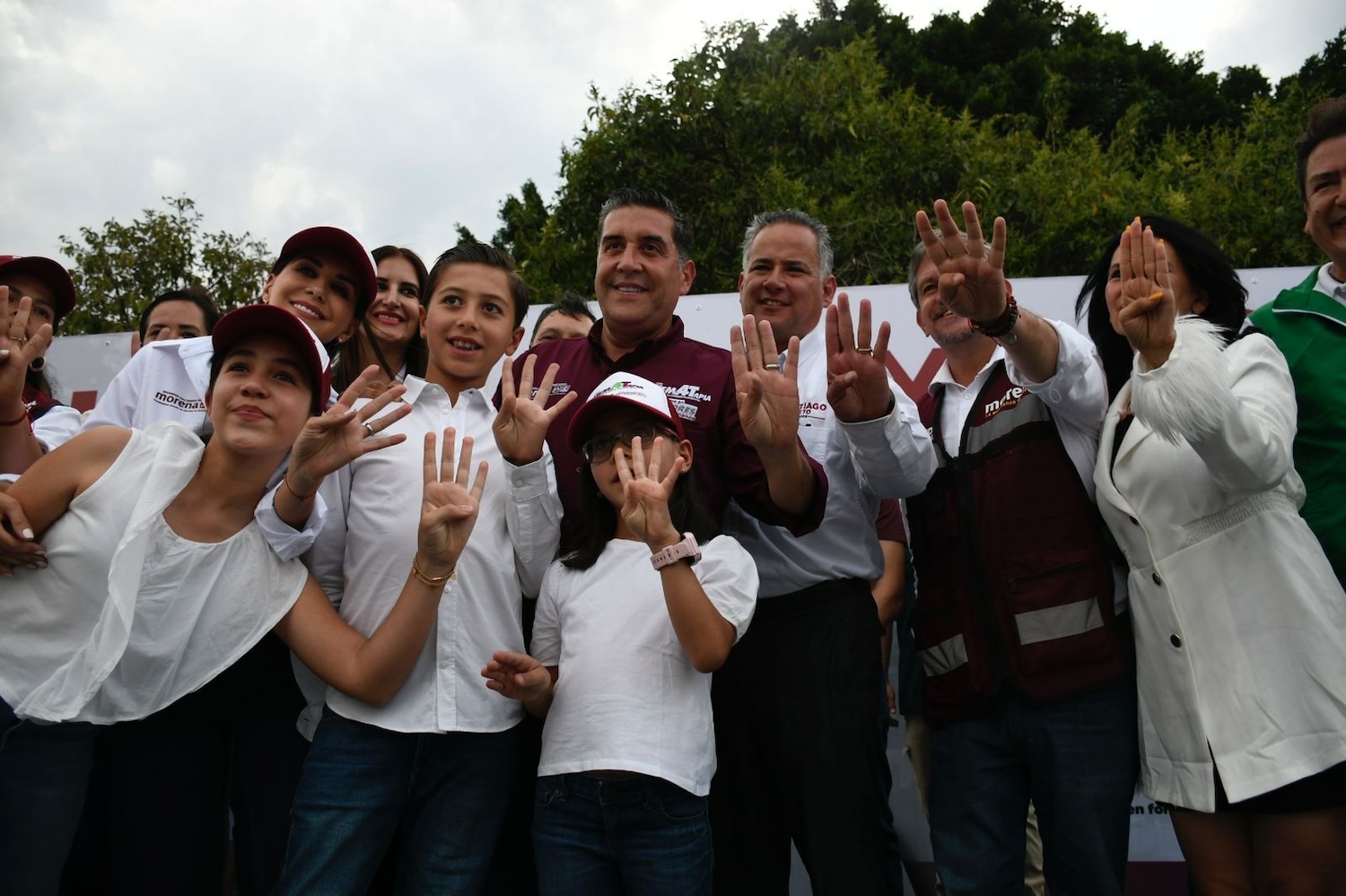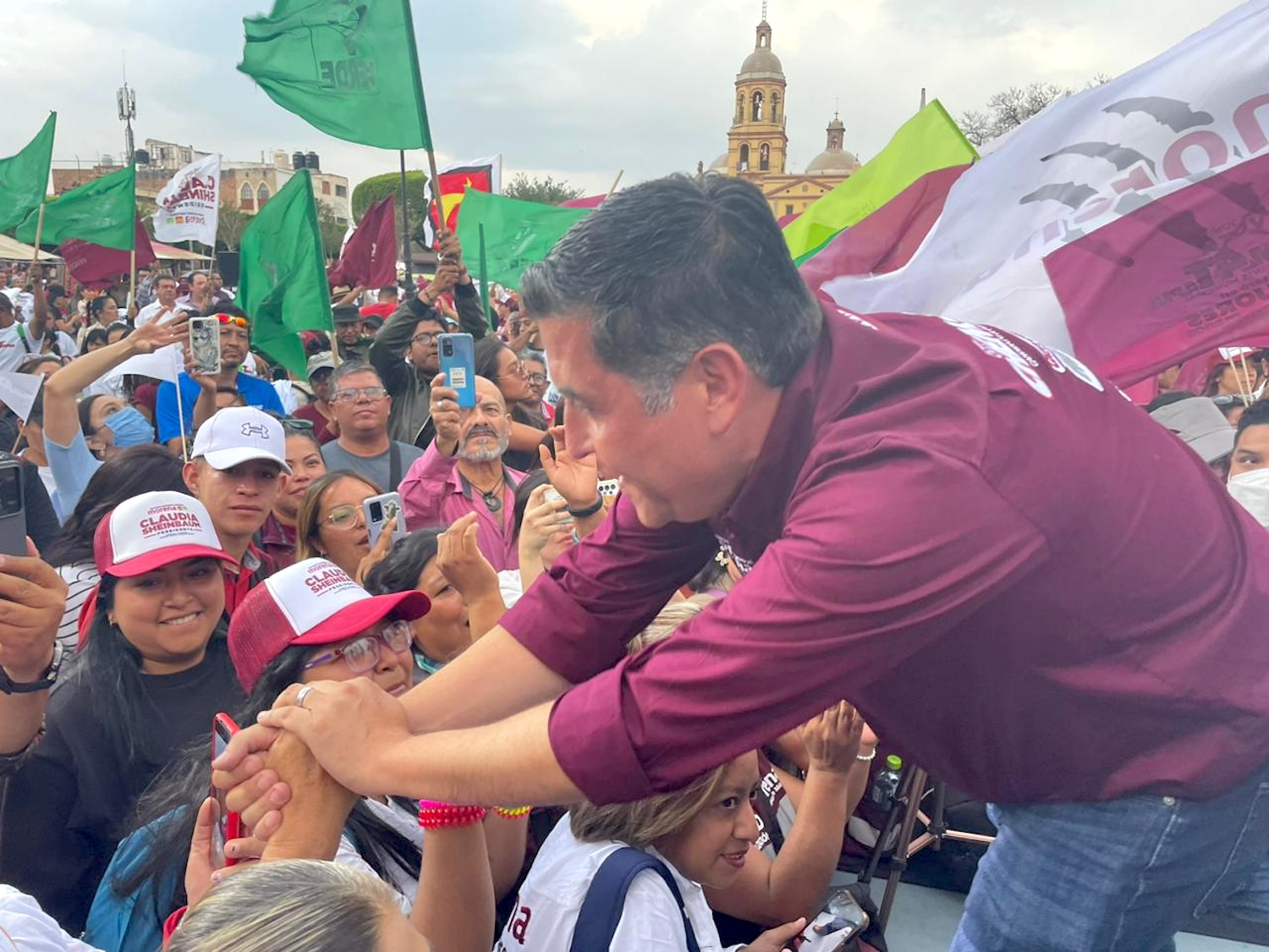 En la Plaza de los Fundadores, rodeado de miles de simpatizantes de los tres partidos políticos, el abanderado de la Cuarta Transformación, dijo que el movimiento que encabeza habita en cada familia, en cada mujer y hombre queretana que busca justicia social, igualdad, respeto y un gobierno al servicio del pueblo.