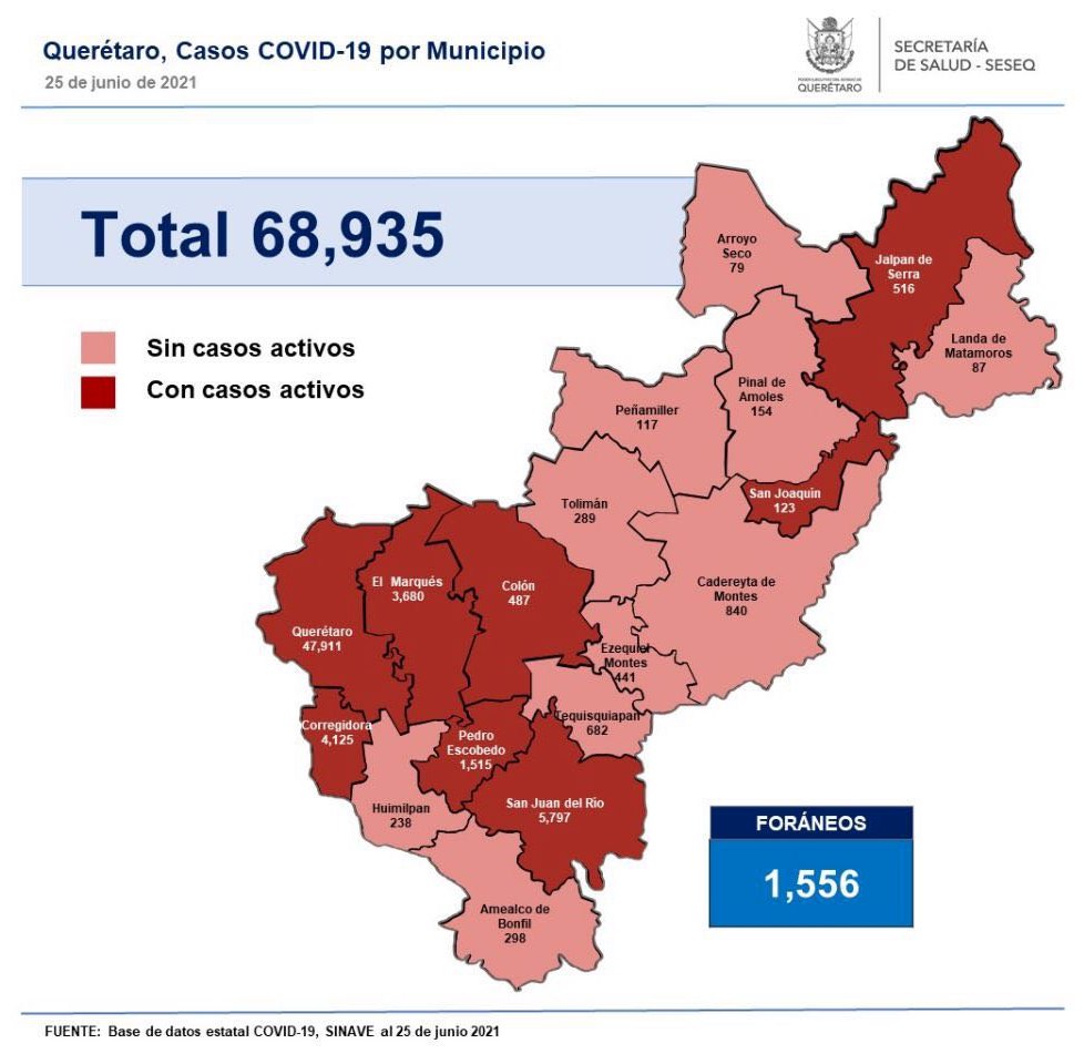 La Secretaría de Salud de Querétaro reportó este viernes cero defunciones por Covid-19, aunque se sumaron 30 casos de la enfermedad; se trata de once mujeres y 19 hombres.