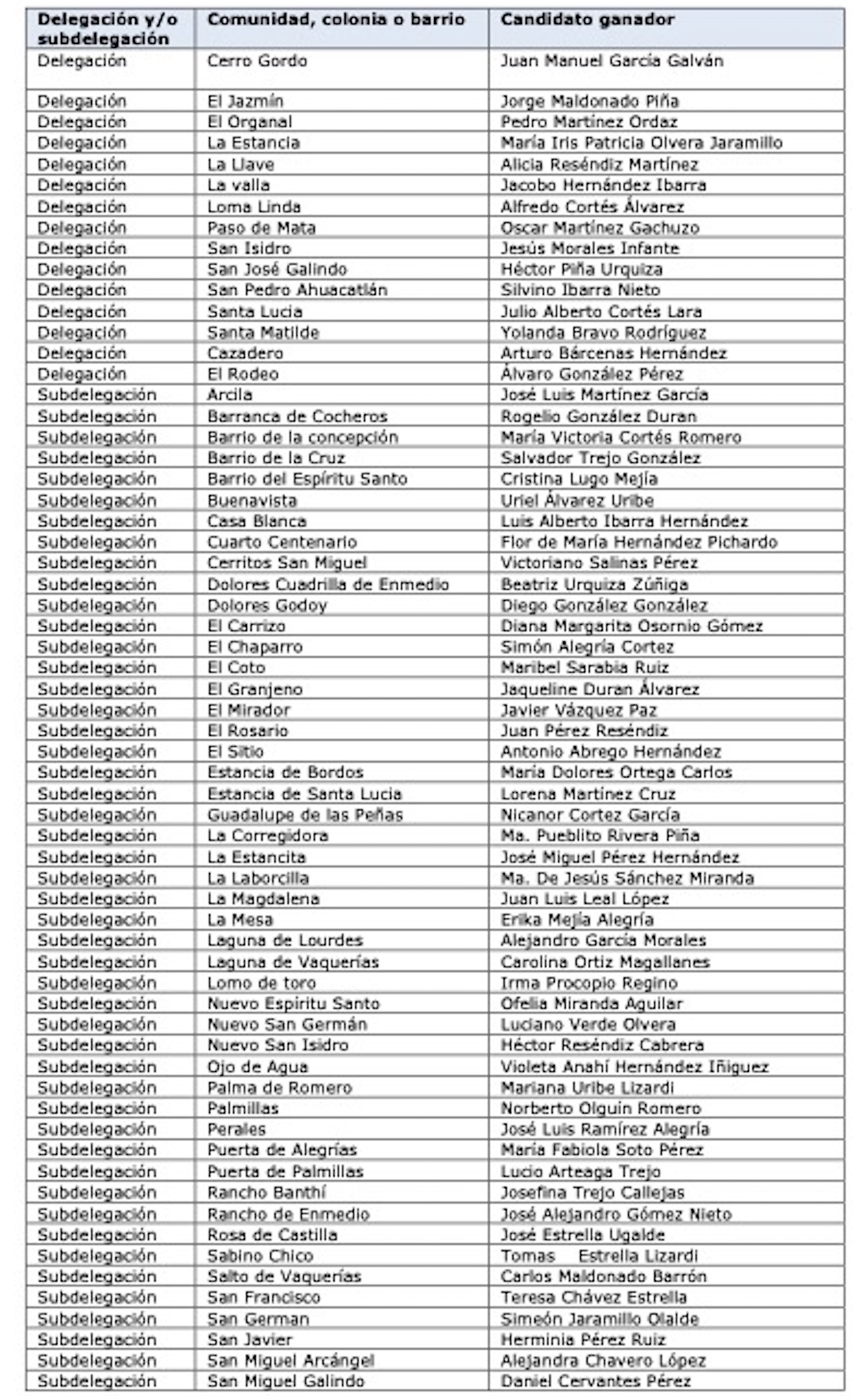 Cabe mencionar que en el caso de la subdelegación de San Antonio Zatlauco, se procederá a realizar elección extraordinaria, ya que se registró un empate entre los candidatos. Esto con base en lo dispuesto en el artículo 65 del Reglamento para Autoridades Auxiliares del Municipio de San Juan del Río, Querétaro.