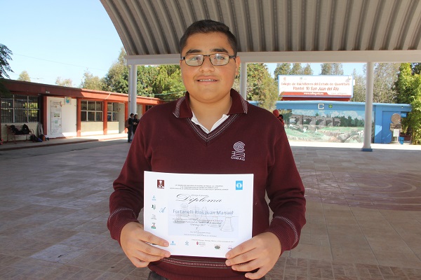 Juan Manuel Fortanelli Ríos, estudiante de tercer semestre del Plantel 10 San Juan del Río, del Colegio de Bachilleres del Estado de Querétaro (COBAQ), obtuvo el cuarto lugar nacional en Ajedrez en el Segundo Campeonato Nacional de la Juventud realizado el fin de semana pasado en Durango, competencia convocada por la Federación Nacional de Ajedrez de México, en coordinación con la Universidad Autónoma de Durango y que contó con el apoyo de las autoridades de aquella entidad federativa.