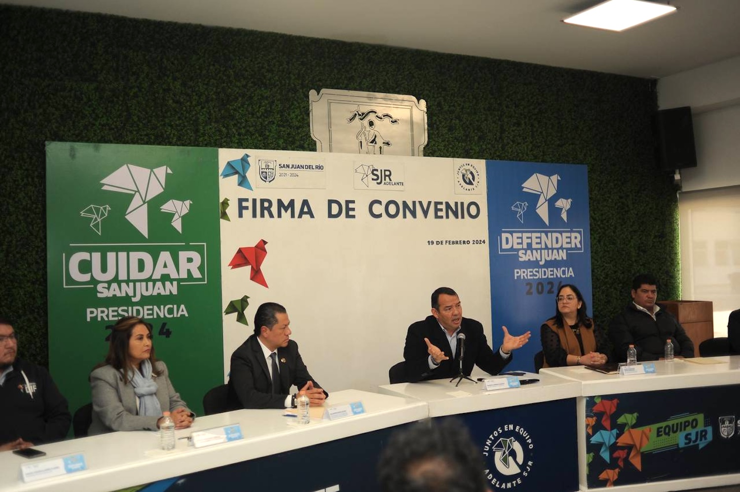 En el evento, realizado en el Salón de Cabildo de Centro Cívico, el presidente municipal de San Juan del Río, Roberto Cabrera Valencia, destacó su compromiso con la firma del convenio, que es el primero en signarse entre un municipio de la entidad y la Autoridad de Ejecución de Medidas del Sistema Integral de Justicia Penal para Adolescentes del Estado de Querétaro. Agregó que, por medio de acciones socioeducativas, se dará atención integral a las juventudes y la niñez que lo requieran.