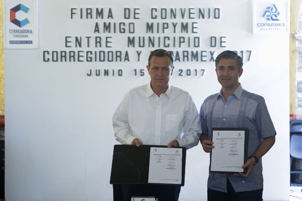 Mauricio Kuri González, presidente municipal de Corregidora, encabezó la firma del convenio de colaboración entre la Confederación Patronal de la República Mexicana (Coparmex) Querétaro y la demarcación.