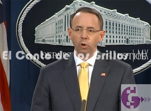 El subprocurador Rod Rosenstein afirmó que los rusos llevaron a cabo una “guerra informativa” con un presupuesto de 1.25 millones de dólares al mes para “sembrar discordia” en el sistema electoral de Estados Unidos, y sostuvo que ningún estadounidense participó a sabiendas.