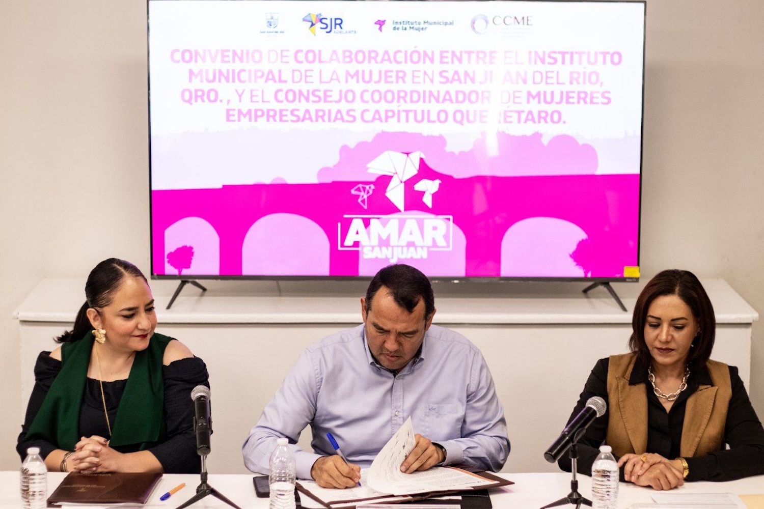 Con el objetivo de mejorar la economía de las mujeres y fomentar su crecimiento en diversas actividades financieras relacionadas con la innovación, autoempleo y emprendimiento, se llevó a cabo la firma de convenio entre el gobierno municipal de San Juan del Río, encabezado por Roberto Cabrera Valencia, a través del Instituto Municipal de la Mujer (IMM), dirigido por María Guadalupe Gómez Rodríguez y el Consejo Coordinador de Mujeres Empresarias Capítulo Queretaro.