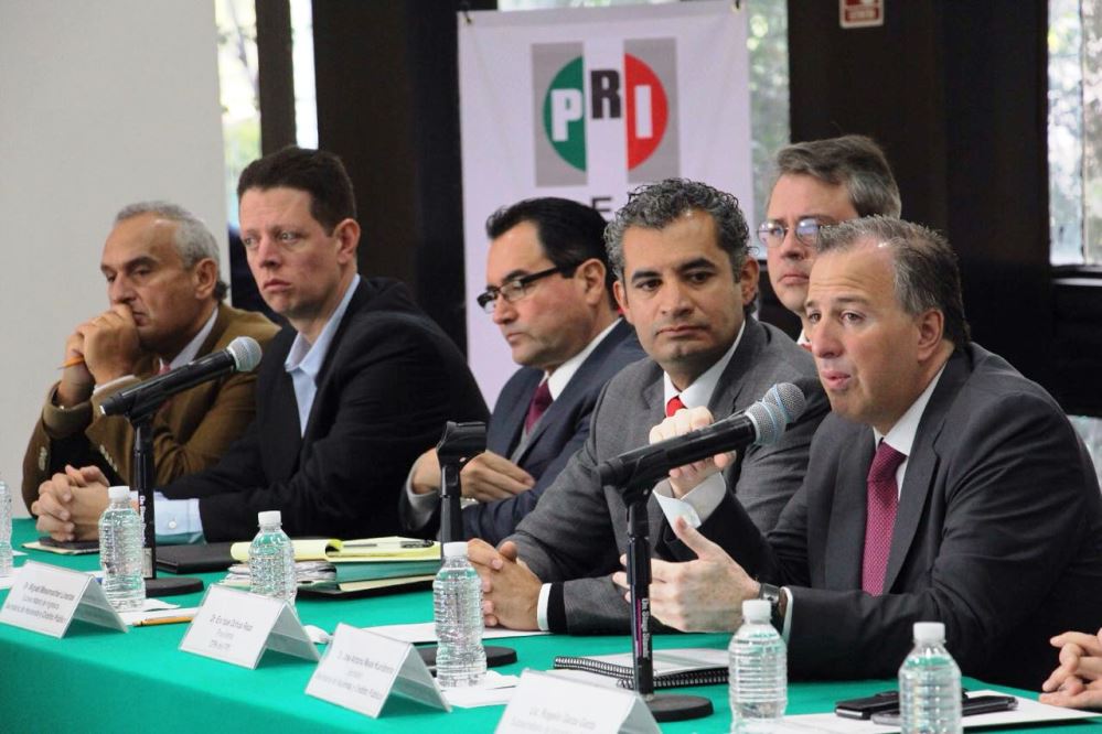 En reunión de trabajo en la sede del Comité Ejecutivo Nacional, encabezada por Enrique Ochoa Reza y el secretario de Hacienda, José Antonio Meade Kuribreña, con presidentes de los comités directivos estatales, así como delegados políticos del CEN en los estados y coordinadores de los grupos parlamentarios del PRI en los congresos de los estados, aseguraron que el tricolor apoyará el Acuerdo para el Fortalecimiento Económico y la Protección de la Economía Familiar, propuesto y presentado por el presidente de la República, Enrique Peña Nieto.