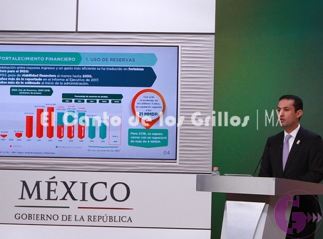 En la residencia oficial de Los Pinos, acompañado por el vocero del gobierno de la República, Eduardo Sánchez Hernández, presentó el Informe 2017-2018 sobre la situación que guarda el Instituto Mexicano del Seguro Social (IMSS).