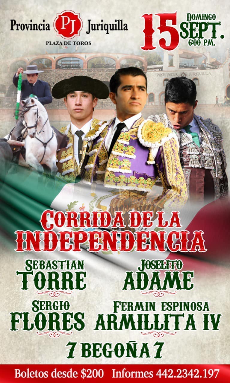 El “Pollo” Torreslanda dijo que son ya 32 años celebrando estas tradicionales fiestas patrias, desde su primer cartel en el año 1987 con toros de La Paz, donde estuvieron inaugurando en ese entonces los matadores Curro Rivera, Armillita y Paco Doddoli, y este año estará el matador Sergio Flores por segunda ocasión, compartiendo cartel el día domingo 15 de septiembre en una corrida muy mexicana con los toreros del momento, Joselito Adame y Fermín Espinosa “Armillita IV”, lidiando imponentes toros de la ganadería de “Begoña”, propiedad de Alberto Bailleres, quien lidia por primera vez en esta plaza.