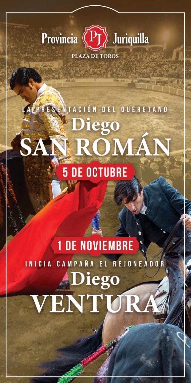 Por último, se develó un gran cartel anunciando el próximo 1° de noviembre el regreso a México e inicio de temporada del mejor rejoneador del mundo, Diego Ventura, quien se encuentra muy ilusionado de estar de nuevo en el coso queretano y que pidió dar inicio aquí en Provincia Juriquilla. Ha dicho que Querétaro es su “tierra adoptiva”. Aún por confirmar dos matadores para esta fecha y se lidiarán astados de Fernando de la Mora.