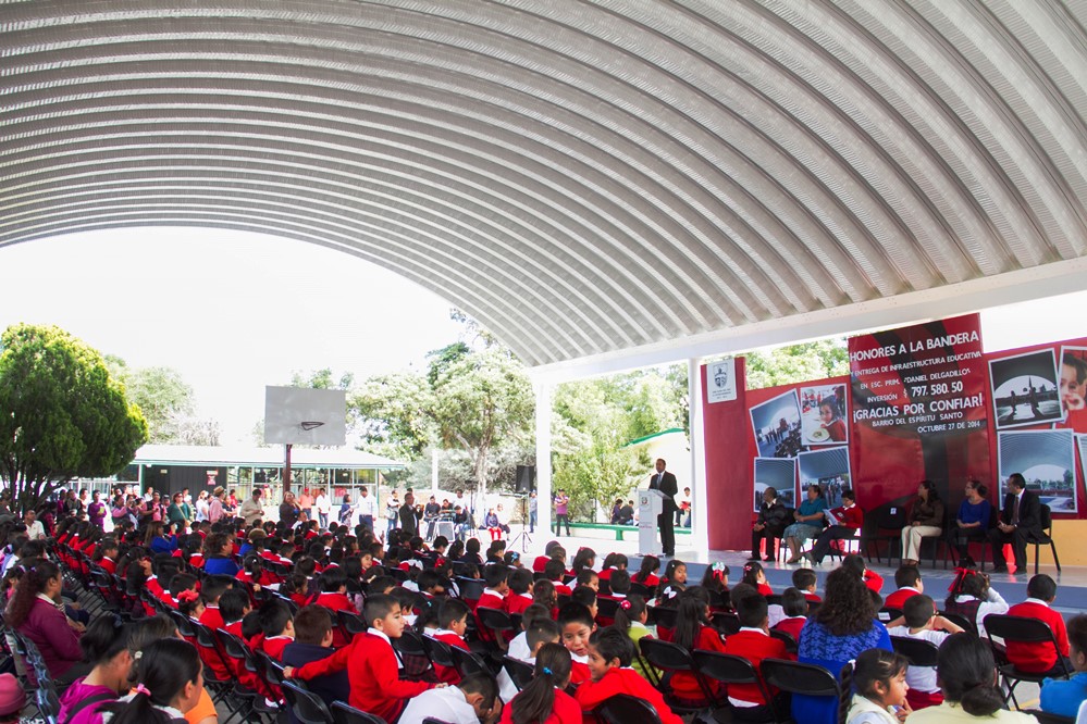 El profesor Vicente Rocha Delgado, director de la primaria “Daniel Delgadillo”, destacó que con el arco techo se benefician “175 pequeños y pequeñas de nuestra escuela, pero se beneficiarán más en el futuro, que es lo importante”.
