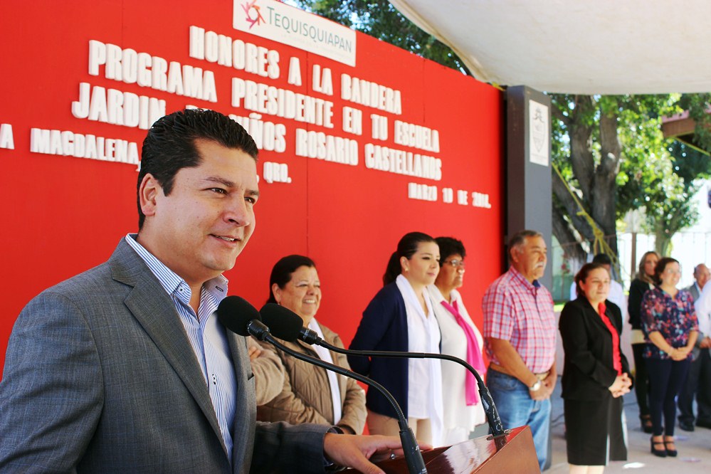 Ahí, el presidente municipal tequisquiapense anunció la construcción de una techumbre tipo arcotecho en la cancha de usos múltiples del jardín de niños, toda vez que es una de las necesidades más sentidas por parte de la comunidad educativa.