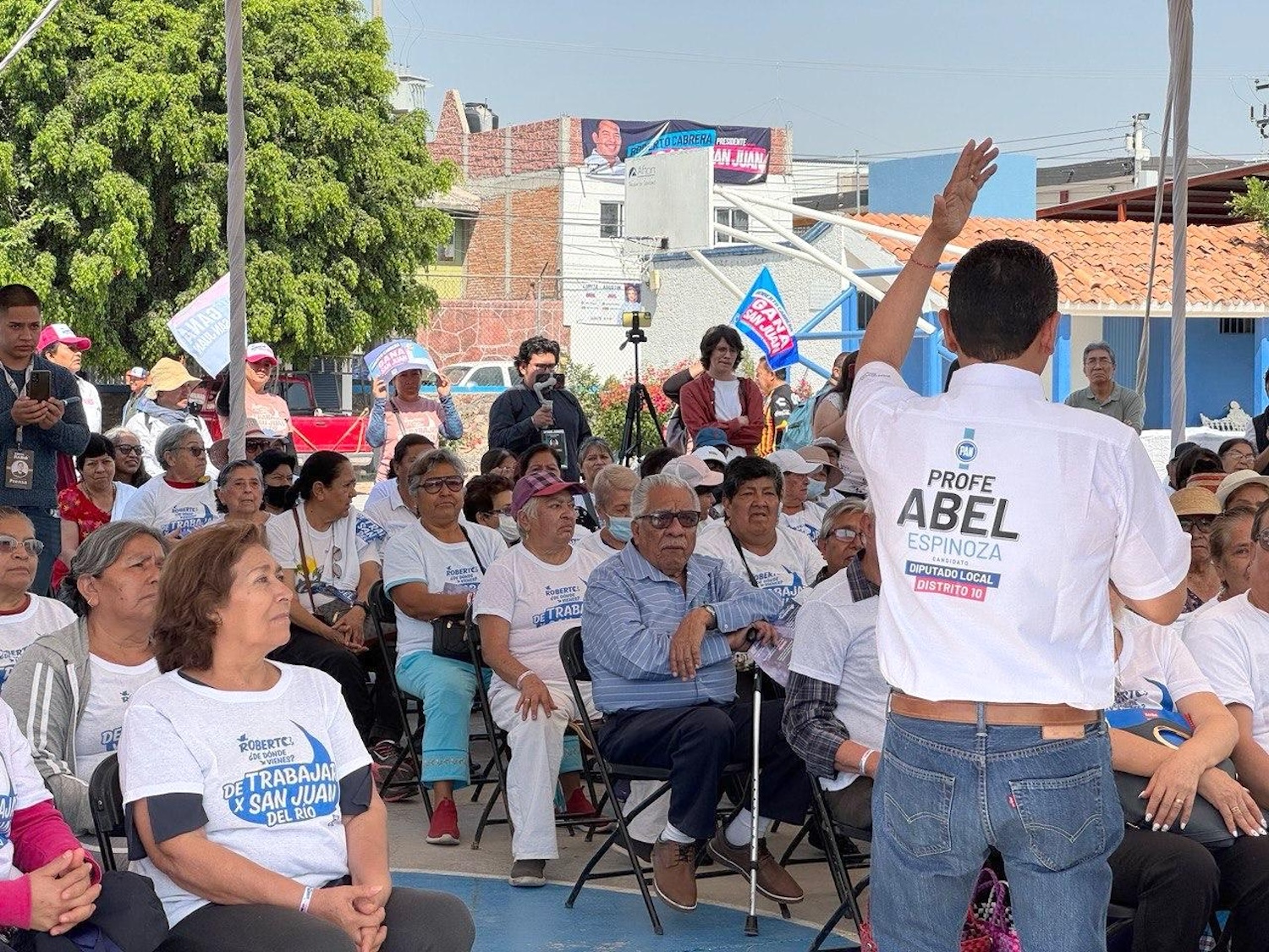 Ante decenas de adultos mayores, reunidos en el parque del Pedregoso, el candidato al X Distrito local, Abel Espinoza del Partido Acción Nacional, Revolucionario Institucional y de la Revolución Democrática, convocó a los ciudadanos a realizar una cruzada por el bien de San Juan del Río, “tenemos que ir juntos, en un proyecto ganador, con Roberto Cabrera como un presidente comprometido con los adultos mayores y desde luego un servidor desde el Congreso del Estado haciendo gestoría para atender necesidades de la ciudadanía, por eso los convoco a que hagamos una cruzada por el bien de San Juan del Río”, expresó.
