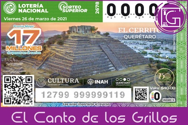 La zona arqueológica de “El Cerrito”, lo que fuera el centro ceremonial tolteca más grande en el norte de Mesoamérica, fue incluida en un billete de la Lotería Nacional que se develará el próximo miércoles 24 de marzo a las 11 de la mañana, y será el viernes 26 de marzo cuando se realice el Sorteo Superior 2678.