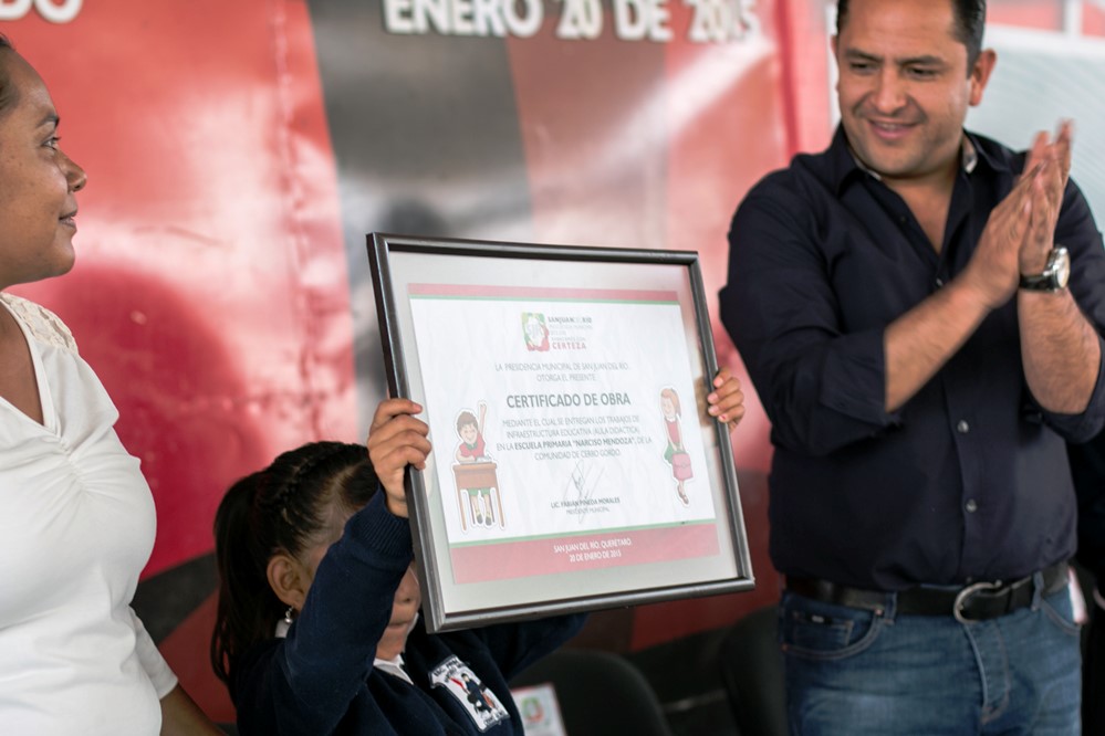 “Este año 2015 estoy proponiendo que se construya un nuevo salón para la Primaria Narciso Mendoza y también para la Primaria Dieciséis de Septiembre, es una noticia que traemos para esta zona de San Juan del Río porque sus hijos necesitan ir a la escuela, y necesitamos que haya más infraestructura educativa para que sean atendidos dignamente”, apuntó.